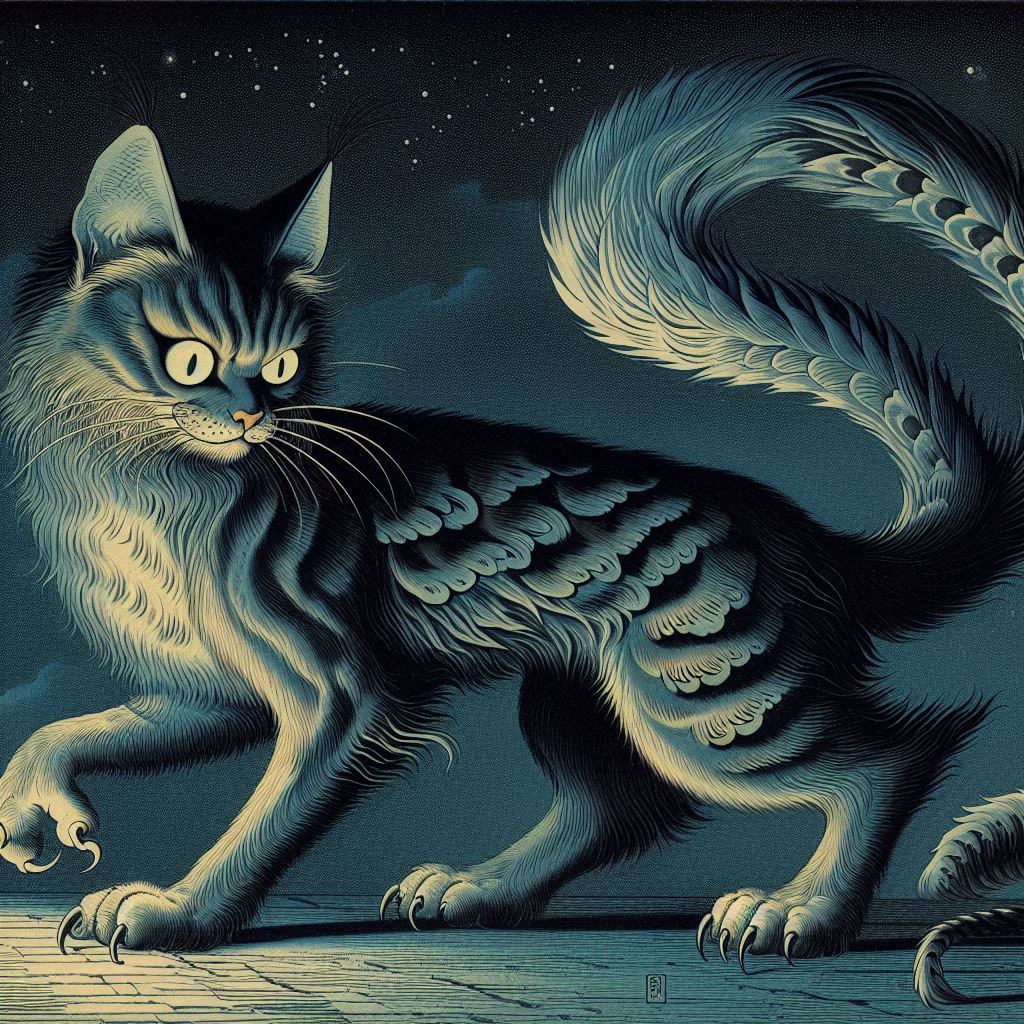 Le Bakeneko est une figure fascinante du folklore japonais, oscillant entre protection et malédiction. Certains sont bienveillants, comme les Maneki Neko, ces célèbres chats porte-bonheur qui saluent en levant la patte.